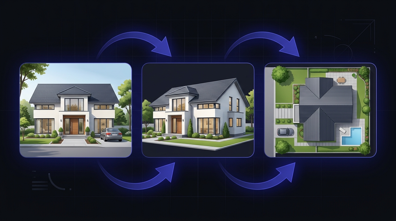 Показывайте клиентам варианты фасадов за минуты, а не дни. Pro-модель даёт качество на уровне ручного рендера.
