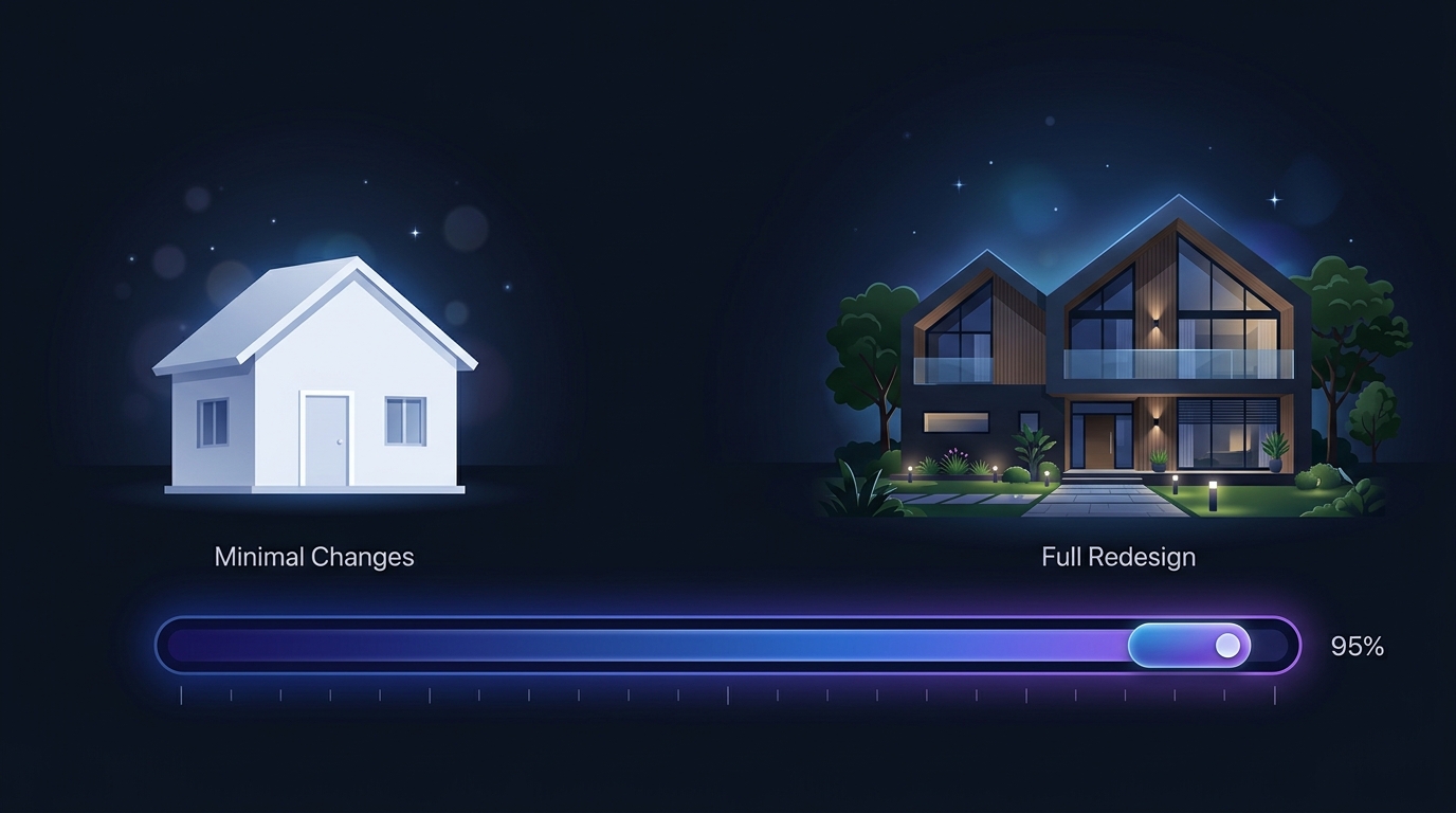 От лёгкого обновления до полной переделки — контроль степени трансформации.